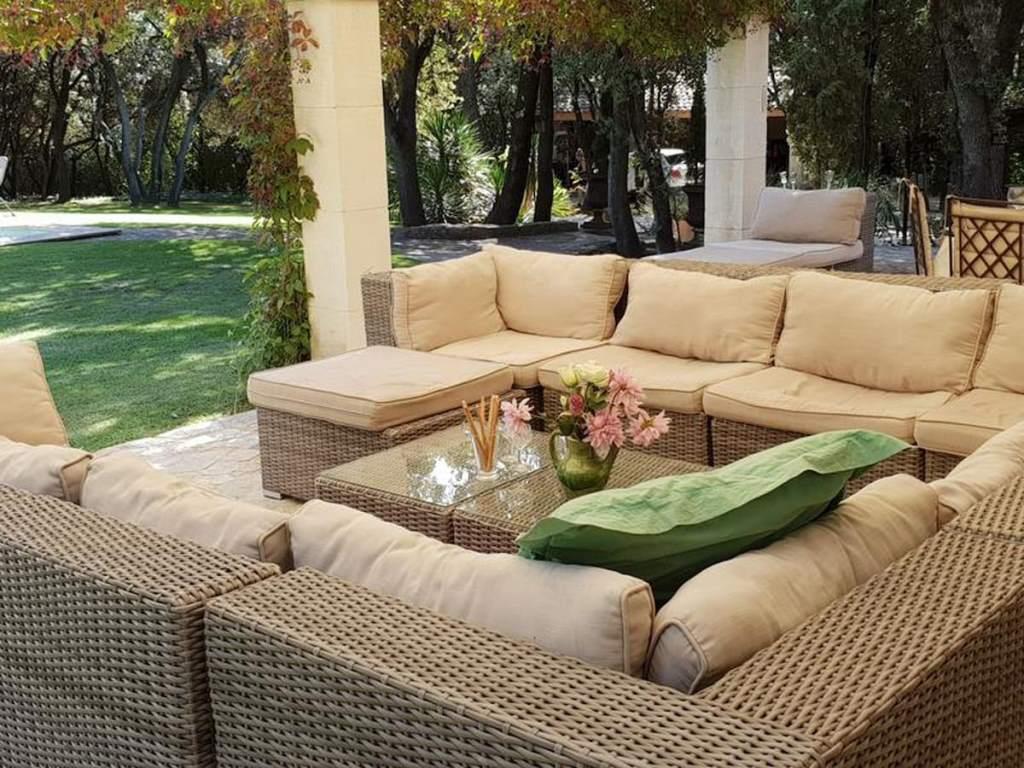 This two-story house is clad in stone, combining Provençal and contemporary decor, and can comfortably accommodate up to 8 people.