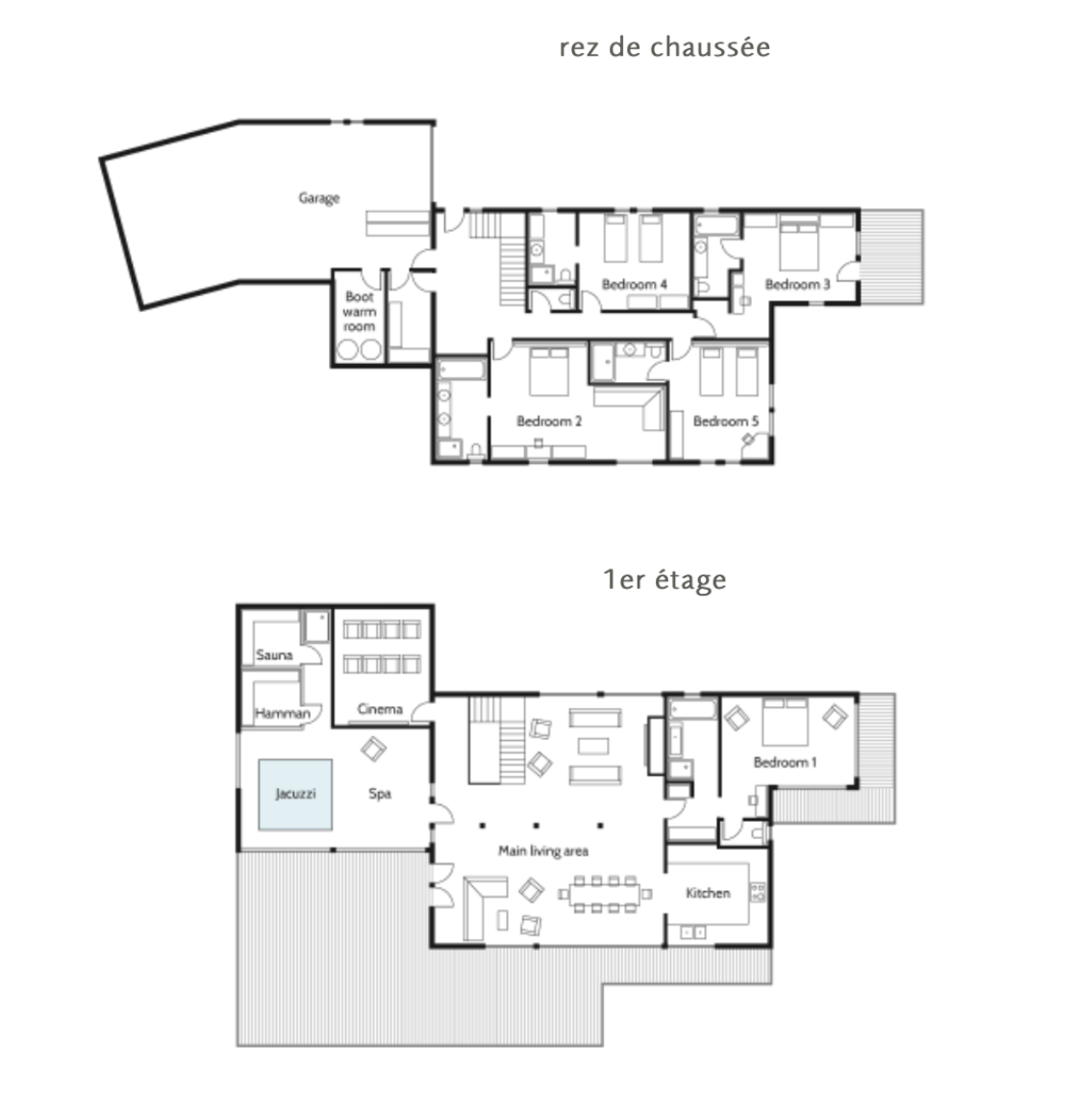 In winter, Chalet becomes the ultimate mountain chalet. It has everything you need after a great day on the slopes. Enjoy the fully equipped spa, with its hammam, sauna, massage room, and indoor and outdoor jacuzzi. For absolute relaxation, savor a glass of wine by the fireplace while the kids watch a cartoon or a movie in the cinema room.